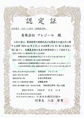 ●右が有機JAS認定証です。画像をクリックしてみてください ⇒